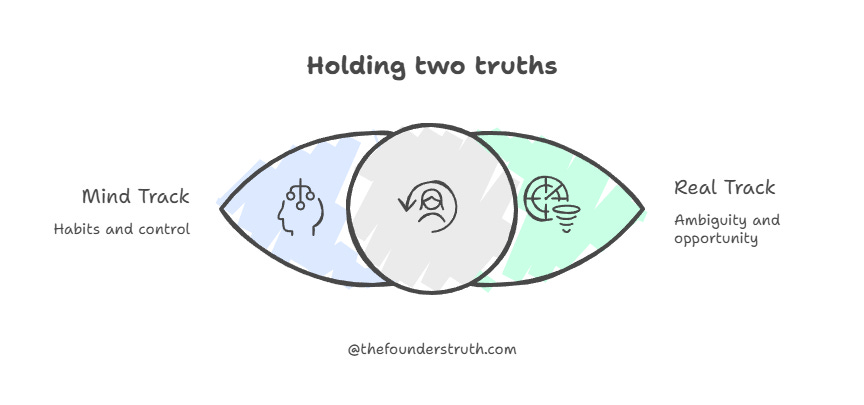 Great post, @Carlo! Most people wait for the real track to become clear before engaging the mind track. hat’s the trap in one sentence. This is a strong founder framework: Ambiguity, Absurdity, Aliveness — and it’s actionable, not just philosophical.