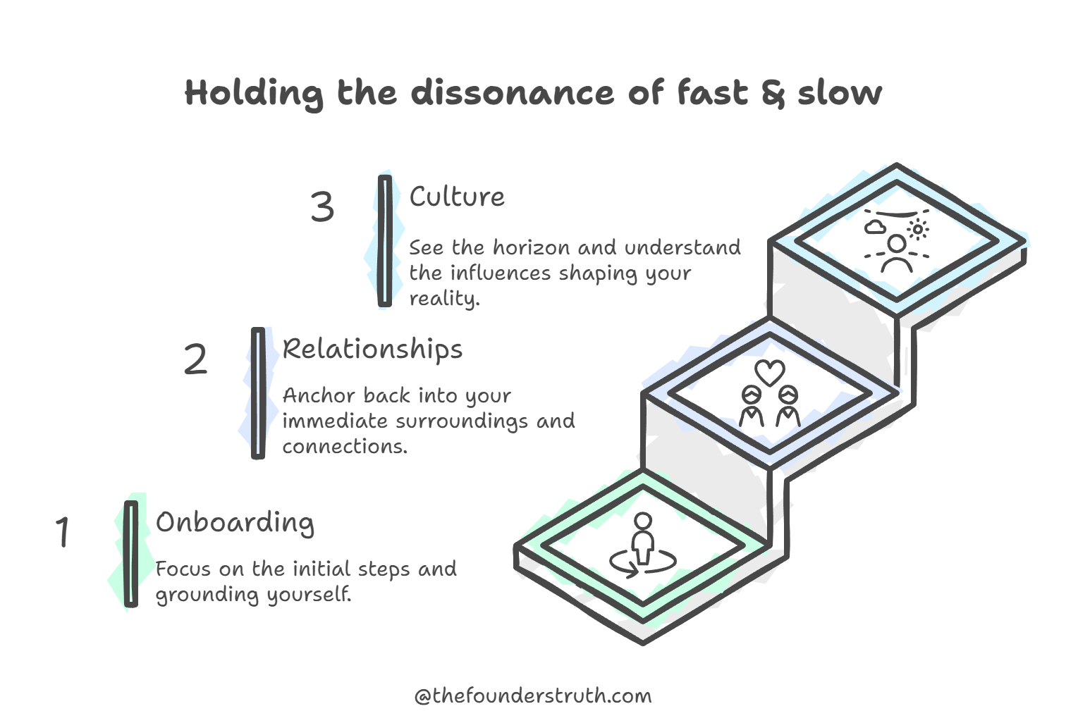 Walk to reach your destination. Every time you feel overwhelmed, slow down and find your footing. What is the next step I can take? Where am I? Can I do this alone? — Focus on the onboarding.
